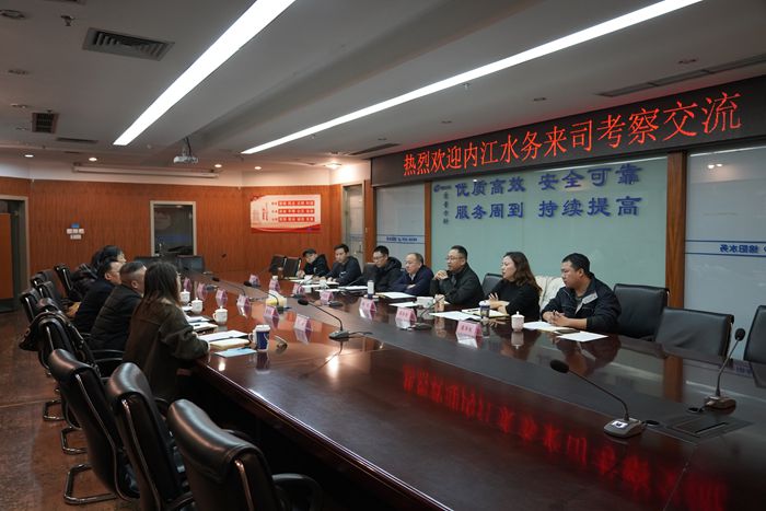 近日,内江市水务有限责任公司常务副总经理唐贤彬带队赴绵阳水务科技公司交流借鉴管道直饮水项目技术方案、设备选型、运营管理、激励机制和财务核算等方面经验,william威廉中文官网党委副书记、董事、工会主席田青春主持会议,...