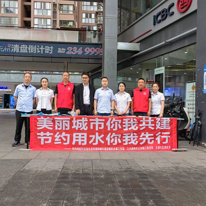 5月11日上午,三水源供水公司第三党支部所辖的城西服务中心联合绵阳科技城生态环境和城市建设局机关第三党支部、高新区古泉社区党总支在樊华似锦四期外广场开展了节水宣传活动。