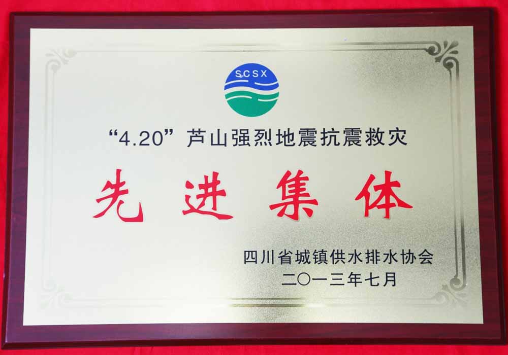 我司荣获全省供水行业“4.20”芦山强烈地震抗灾先进集体荣誉称号